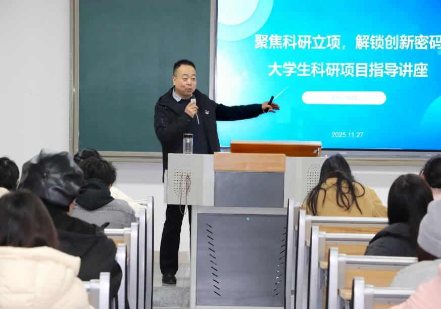 为提升学生科研素养,激发创新思维,助力学子在学术道路上稳步前行, 11月27日下午,马克思主义学院组织开展以“聚焦科研立项,解锁创新密码”为主题的大学生科研项目素养讲座,本次讲座由副研究员马建堂老师主讲,2024级、2025级全体同学参与。