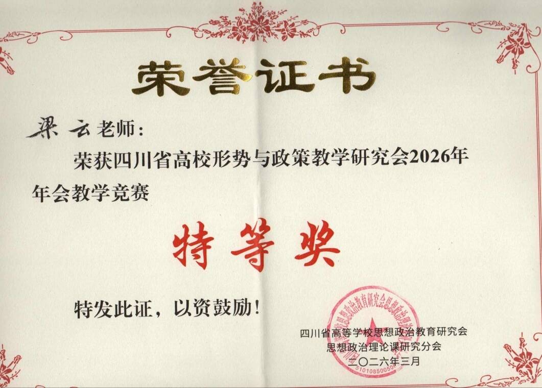 马克思主义学院教师喜获四川省高校形势与政策研究会2026年年会教学竞赛特等奖