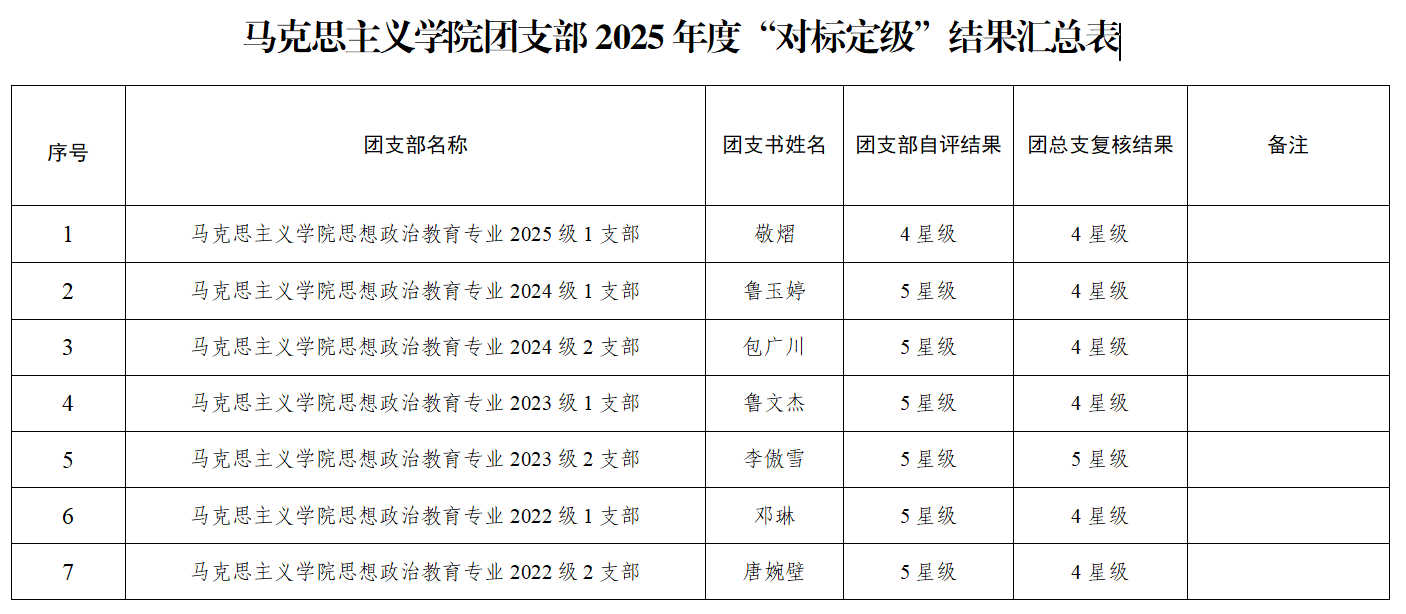 共青团马克思主义学院总支部关于2025年度“对标定级”工作的公示